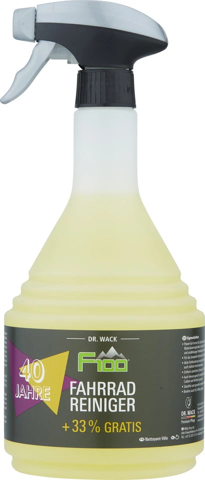 El limpiador de bicicletas F100 de Dr. Wack limpia suave y minuciosamente